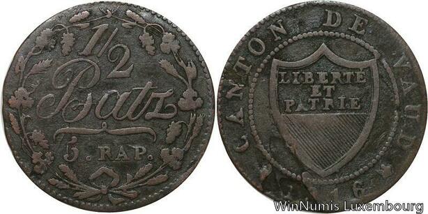 R4890 Switzerland Swiss Cantons Vaud 1/2 Batzen 5 Rappen 1816 -> Make offer