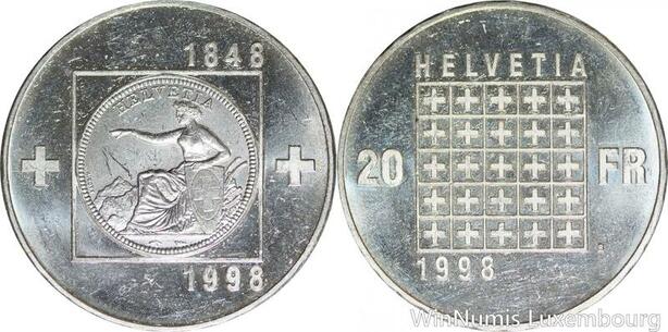 R4919 Switzerland 20 Francs Helvetia 1848 1998 UNC -> Make offer