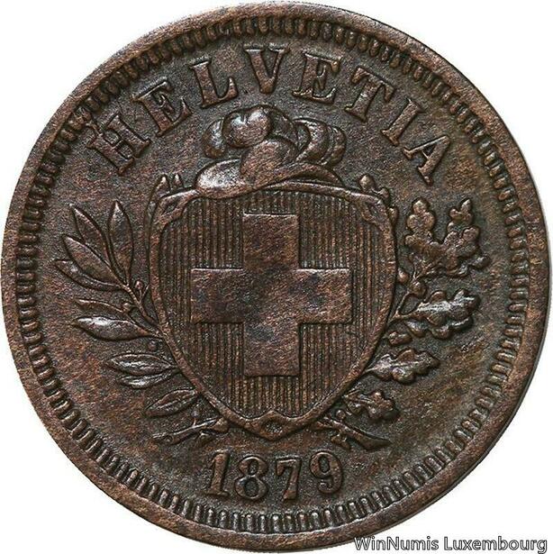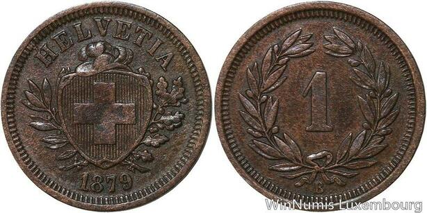 R4943 Rare Switzerland 1 Rappen Helvetia 1879 B Berne AU -> Make offer