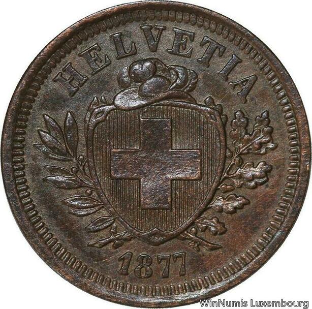 R4944 Rare Switzerland 1 Rappen Helvetia 1877 B Berne UNC -> Make offer