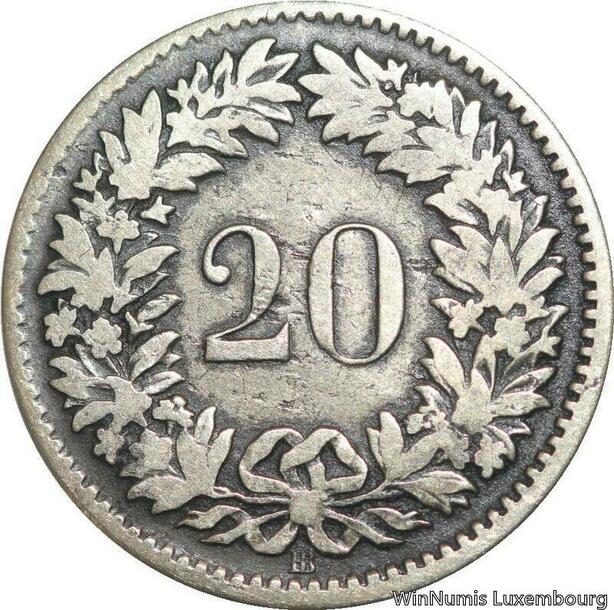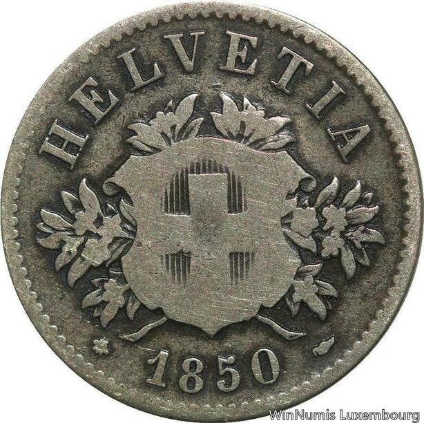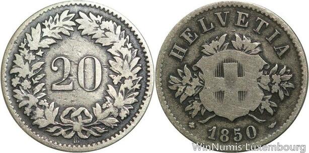 R4951 Switzerland 20 Rappen Helvetia 1850 BB Strasbourg Silver -> Make offer