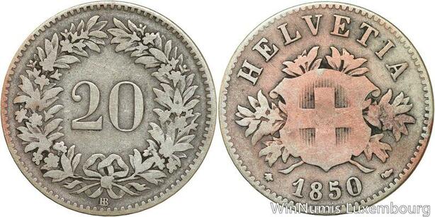R4984 Switzerland 20 Rappen Helvetia 1850 BB Strasbourg -> Make offer