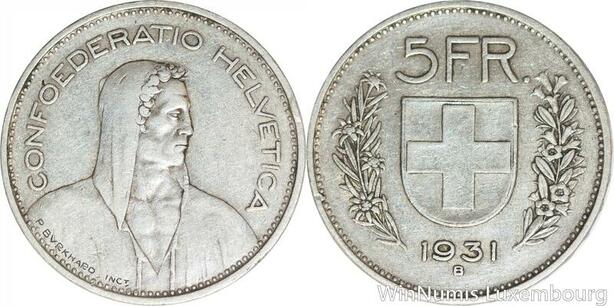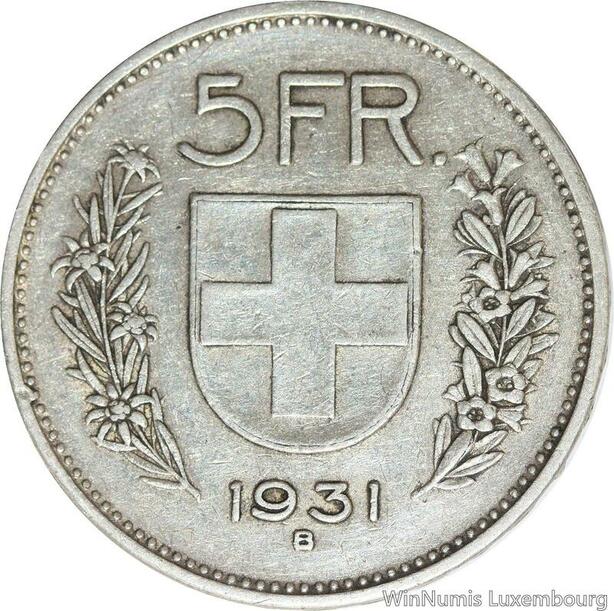 R4989 Switzerland 5 Francs Helvetia 1931 B Berne Argent Silver -> Make offer