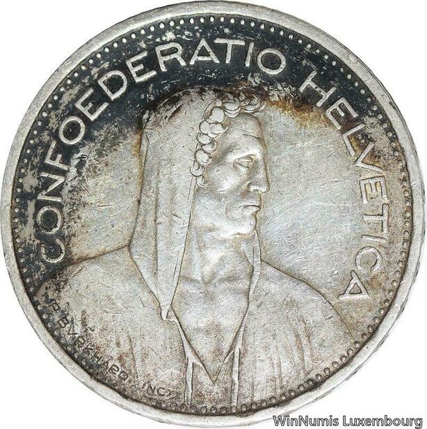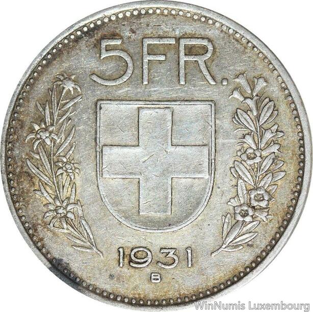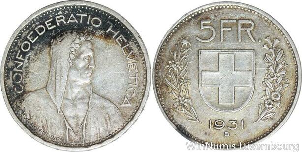 R4990 Switzerland 5 Francs Helvetia 1931 B Berne Argent Silver -> Make offer
