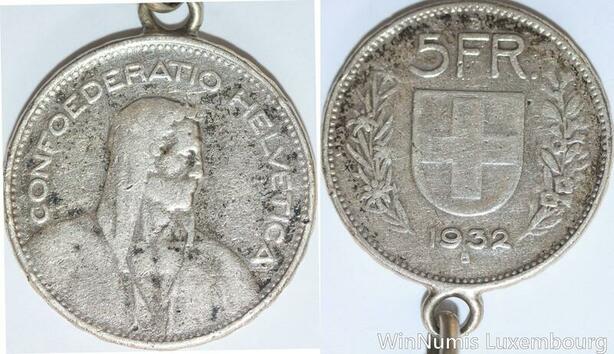 R4995 Switzerland 5 Francs Helvetia 1932 B Berne Argent Silver -> Make offer