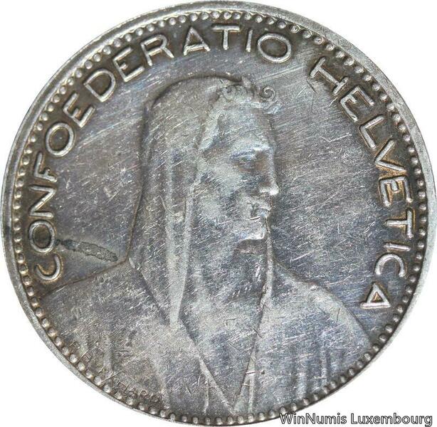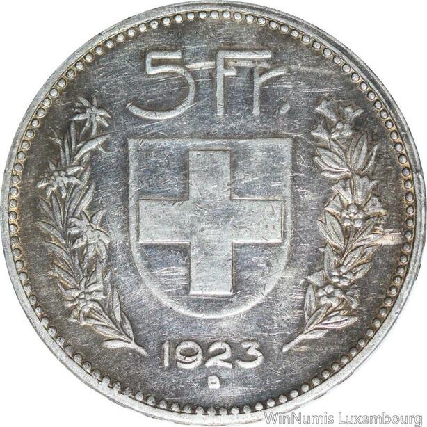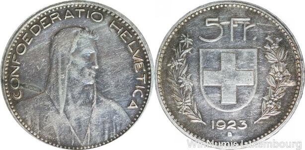 R4999 Rare Switzerland 5 Francs Helvetia 1923 B Berne Argent Silver ->Make offer
