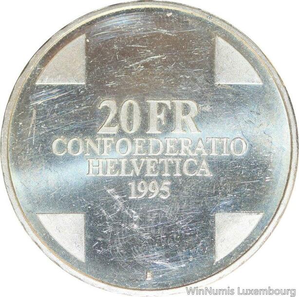 R5014 Switzerland 20 Francs Serpent Blanc Grimm 1995 Silver Proof