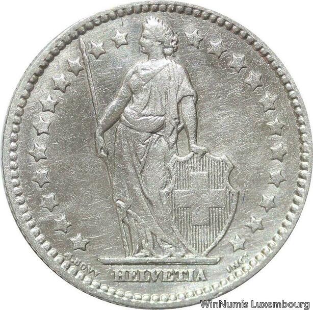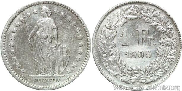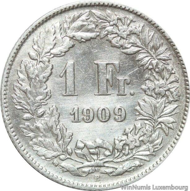 R5017 Switzerland 1 Franc Helvetia 1909 B Berne Argent Silver AU -> Make offer