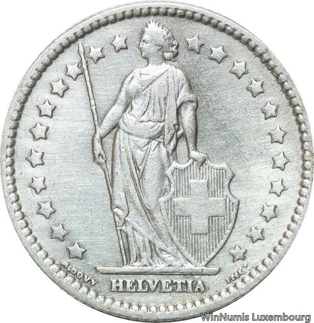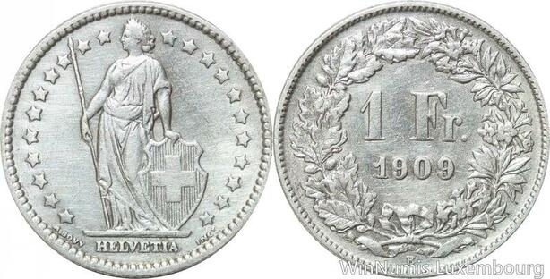 R5020 Switzerland 1 Franc Helvetia 1909 B Berne Argent Silver -> Make offer
