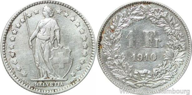 R5023 Switzerland 1 Franc Helvetia 1910 B Berne Argent Silver -> Make offer