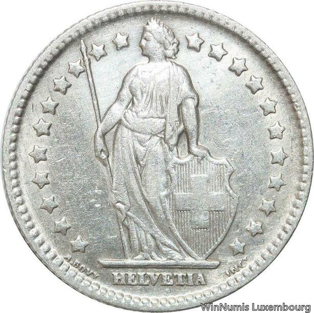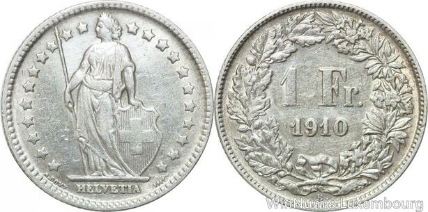 R5025 Switzerland 1 Franc Helvetia 1910 B Berne Argent Silver -> Make offer