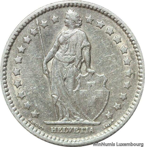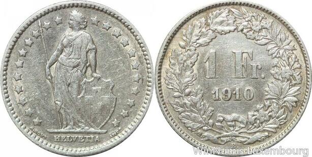 R5026 Switzerland 1 Franc Helvetia 1910 B Berne Argent Silver -> Make offer