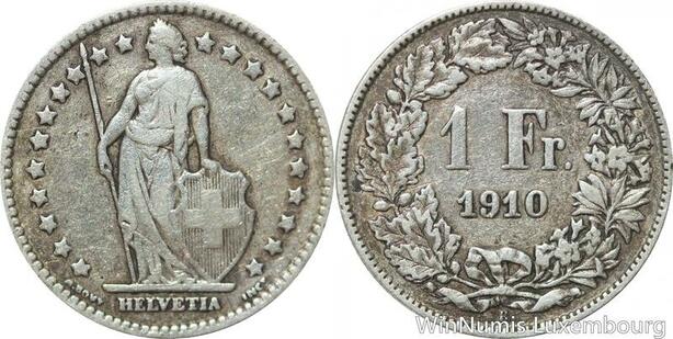R5027 Switzerland 1 Franc Helvetia 1910 B Berne Argent Silver -> Make offer