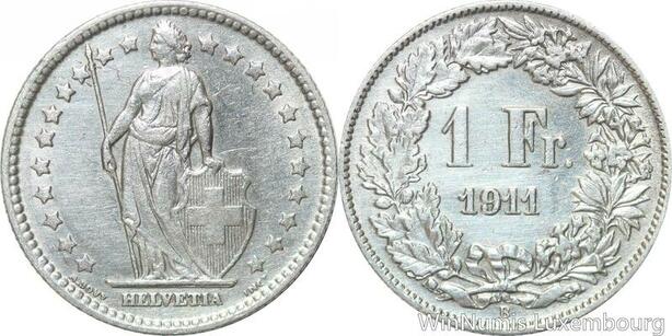 R5028 Switzerland 1 Franc Helvetia 1911 B Berne Argent Silver -> Make offer