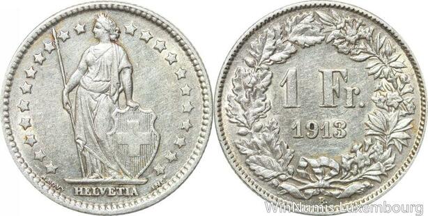 R5040 Switzerland 1 Franc Helvetia 1913 B Berne Argent Silver -> Make offer
