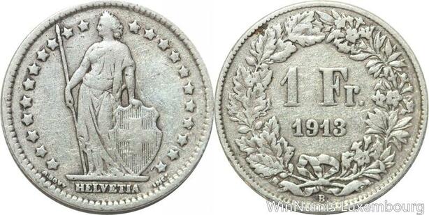 R5042 Switzerland 1 Franc Helvetia 1913 B Berne Argent Silver -> Make offer