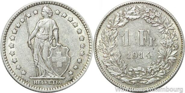 R5044 Switzerland 1 Franc Helvetia 1914 B Berne Argent Silver -> Make offer