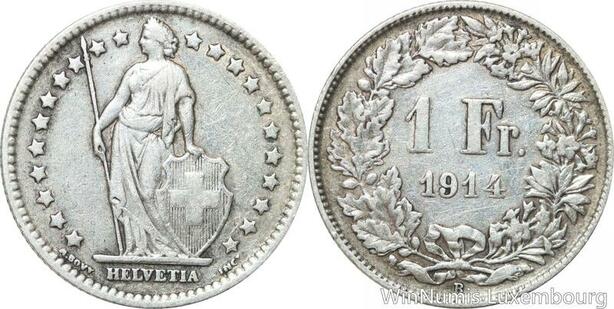 R5045 Switzerland 1 Franc Helvetia 1914 B Berne Argent Silver -> Make offer