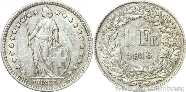 R5050 Switzerland 1 Franc Helvetia 1916 B Berne Argent Silver -> Make offer