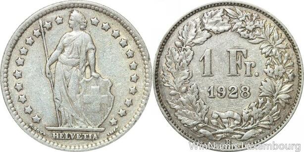 R5054 Switzerland 1 Franc Helvetia 1928 B Berne Argent Silver -> Make offer
