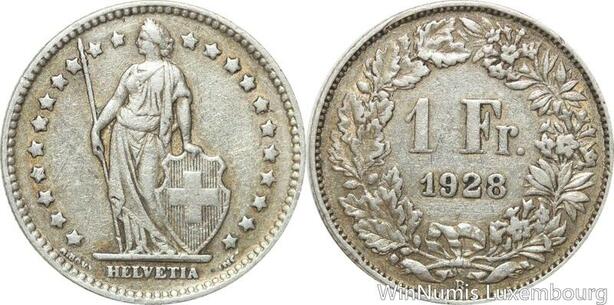 R5056 Switzerland 1 Franc Helvetia 1928 B Berne Argent Silver -> Make offer