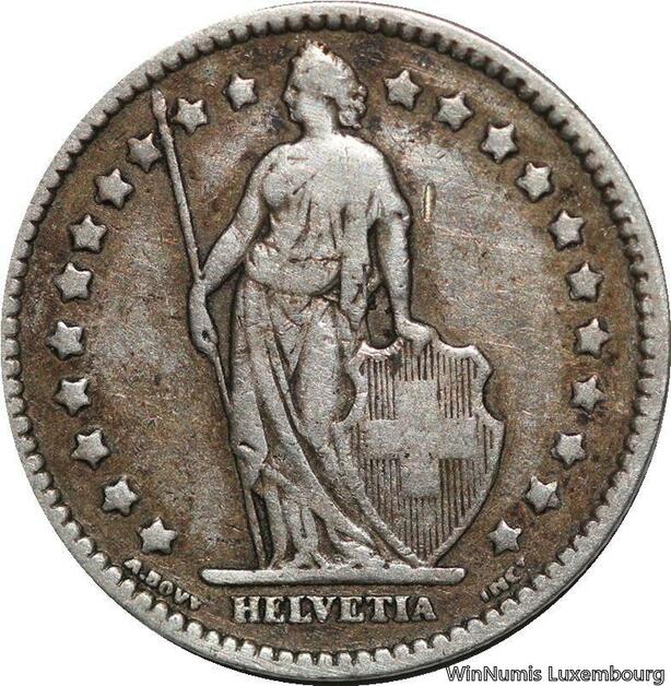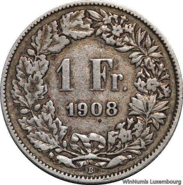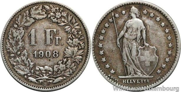 R5067 Switzerland 1 Franc Helvetia 1908 B Berne Silver -> Make offer