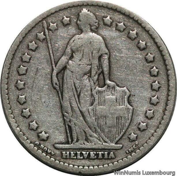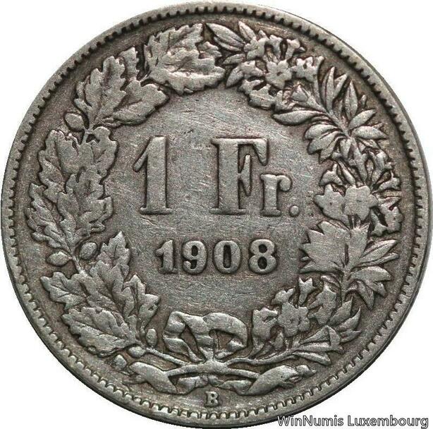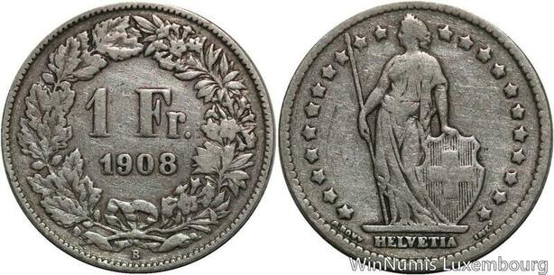 R5069 Switzerland 1 Franc Helvetia 1908 B Berne Silver -> Make offer