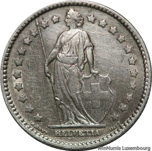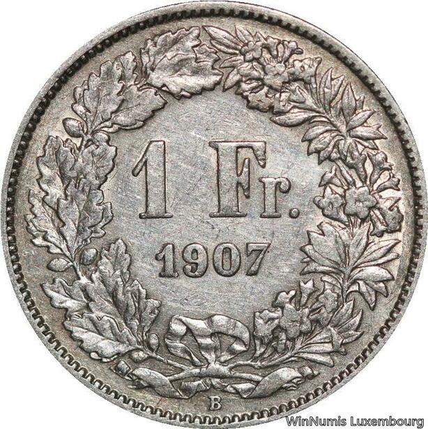 R5073 Rare Switzerland 1 Franc Helvetia 1907 B Berne Silver AU -> Make offer
