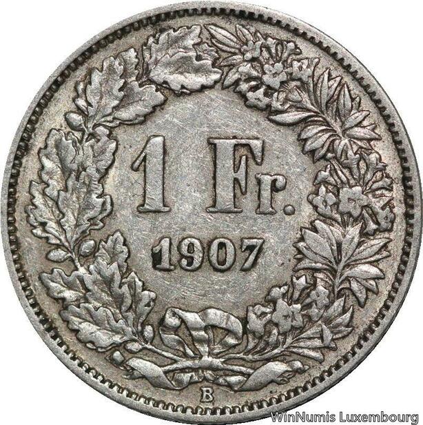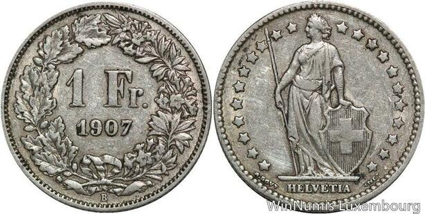 R5076 Switzerland 1 Franc Helvetia 1907 B Berne Silver -> Make offer
