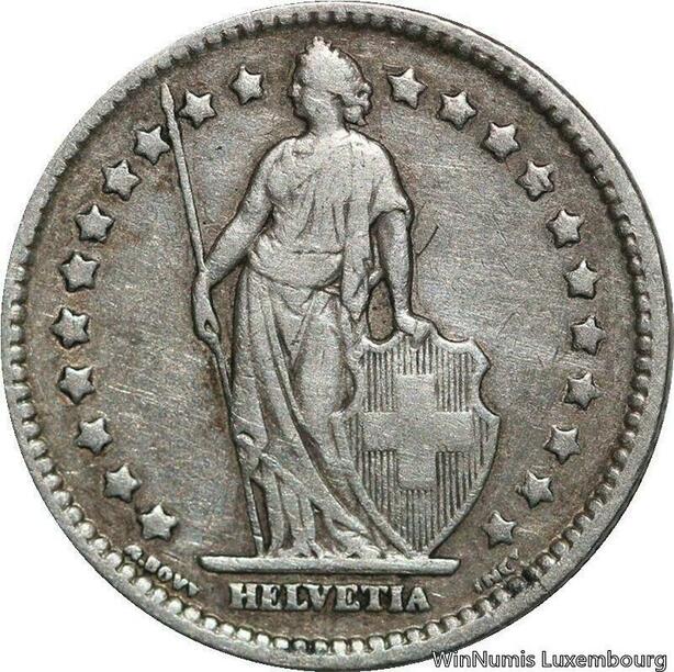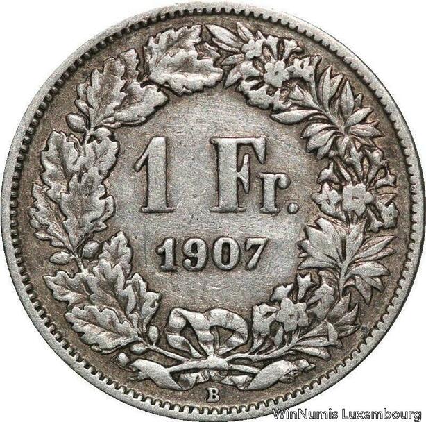 R5077 Switzerland 1 Franc Helvetia 1907 B Berne Silver -> Make offer