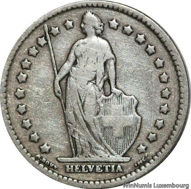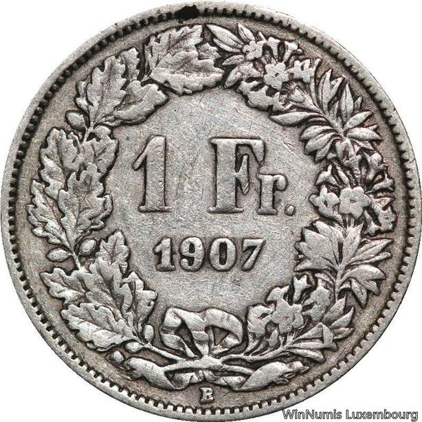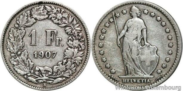 R5078 Switzerland 1 Franc Helvetia 1907 B Berne Silver -> Make offer