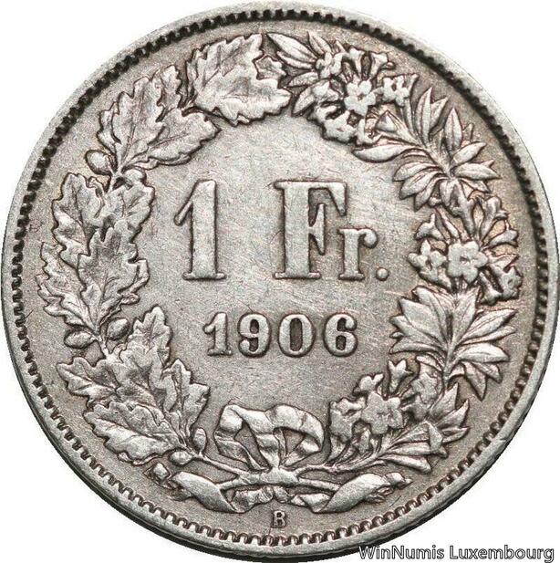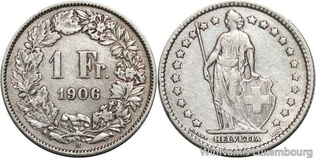 R5080 Switzerland 1 Franc Helvetia 1906 B Berne Silver -> Make offer
