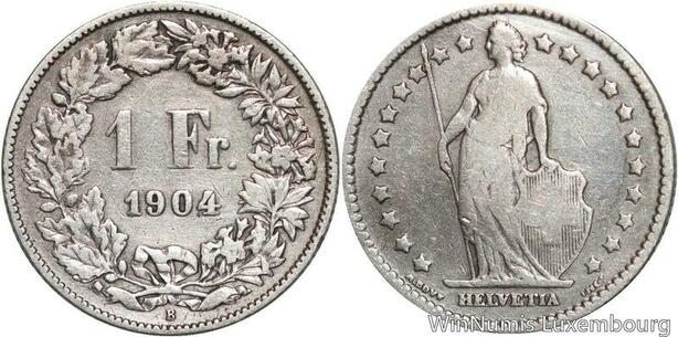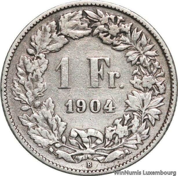R5087 Switzerland 1 Franc Helvetia 1904 B Berne Silver -> Make offer