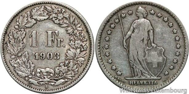 R5088 Switzerland 1 Franc Helvetia 1903 B Berne Silver -> Make offer