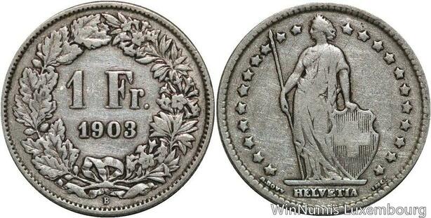 R5089 Switzerland 1 Franc Helvetia 1903 B Berne Silver -> Make offer