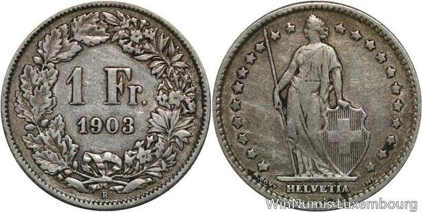 R5092 Switzerland 1 Franc Helvetia 1903 B Berne Silver -> Make offer