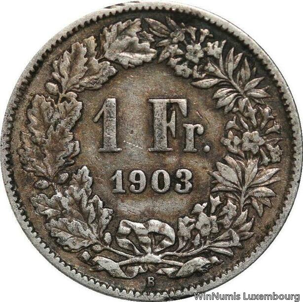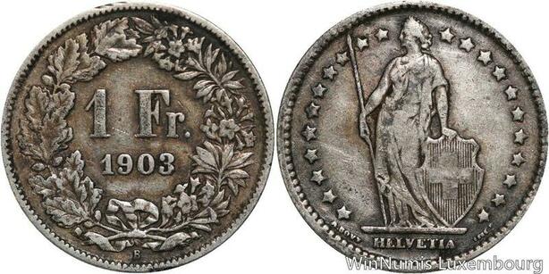 R5094 Switzerland 1 Franc Helvetia 1903 B Berne Silver -> Make offer