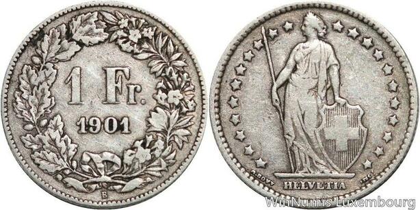 R5096 Switzerland 1 Franc Helvetia 1901 B Berne Silver -> Make offer