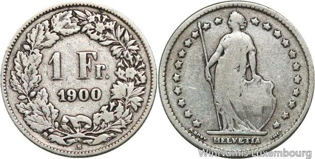 R5098 Switzerland 1 Franc Helvetia 1900 B Berne Silver -> Make offer