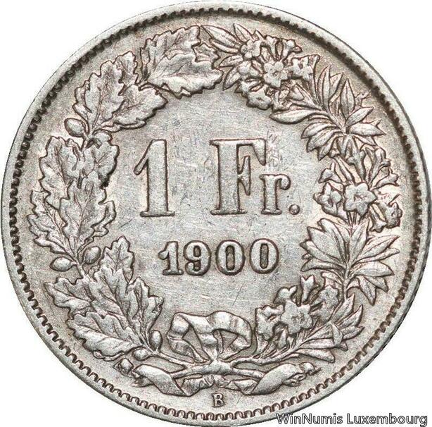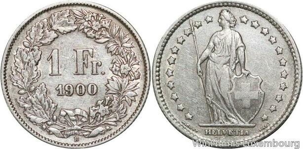 R5100 Switzerland 1 Franc Helvetia 1900 B Berne Silver Quality !! -> Make offer