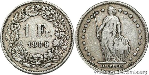 R5101 Switzerland 1 Franc Helvetia 1899 B Berne Silver -> Make offer
