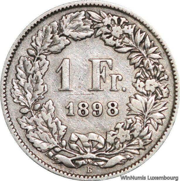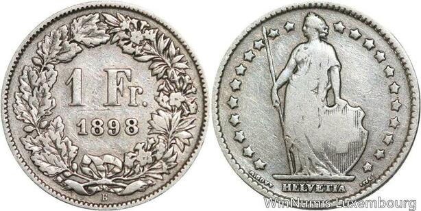 R5104 Switzerland 1 Franc Helvetia 1898 B Berne Silver -> Make offer