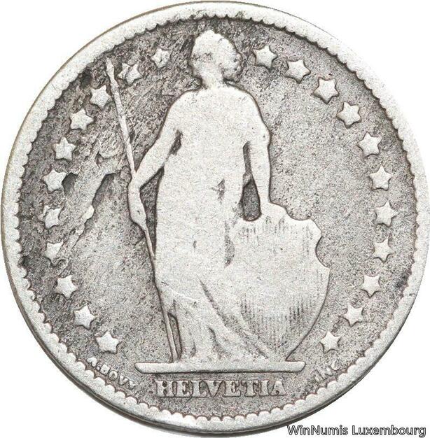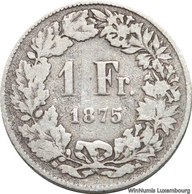 R5112 Switzerland 1 Franc Helvetia 1875 B Berne Silver -> Make offer