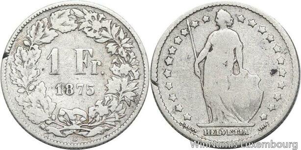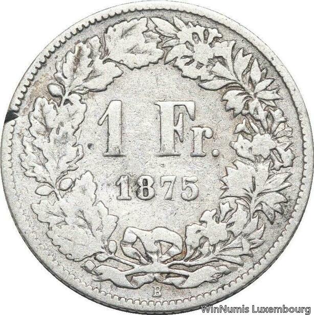 R5116 Switzerland 1 Franc Helvetia 1875 B Berne Silver -> Make offer