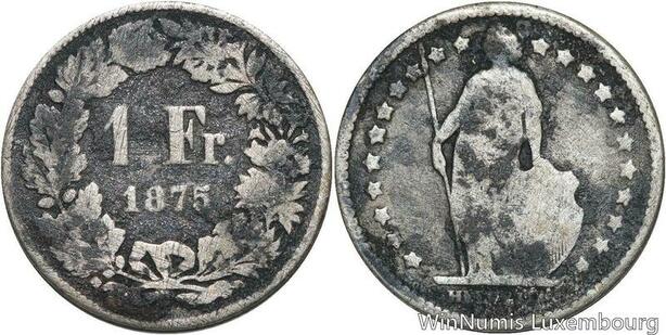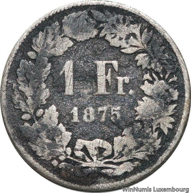 R5117 Switzerland 1 Franc Helvetia 1875 B Berne Silver -> Make offer