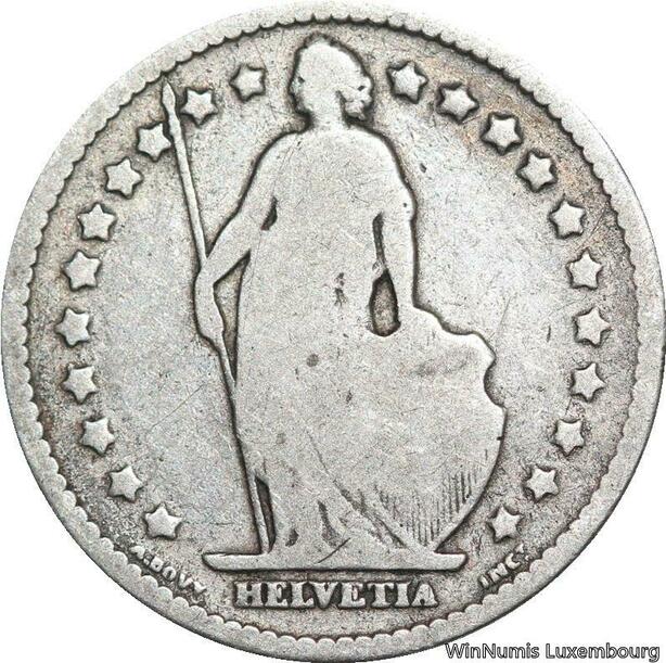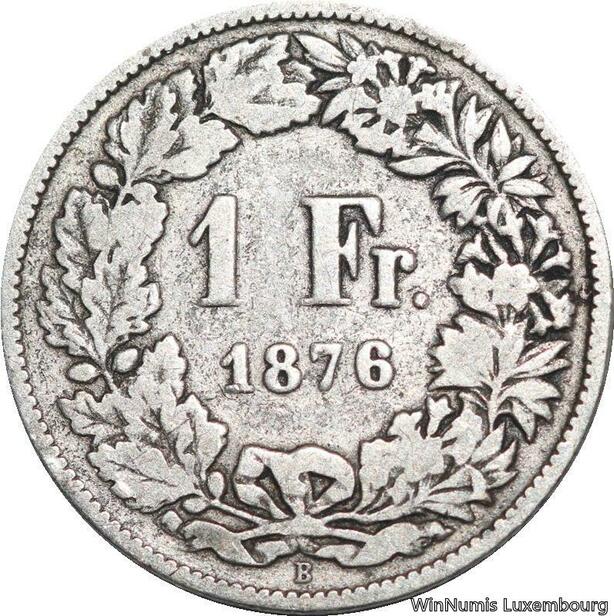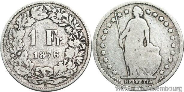 R5119 Switzerland 1 Franc Helvetia 1876 B Berne Silver -> Make offer
