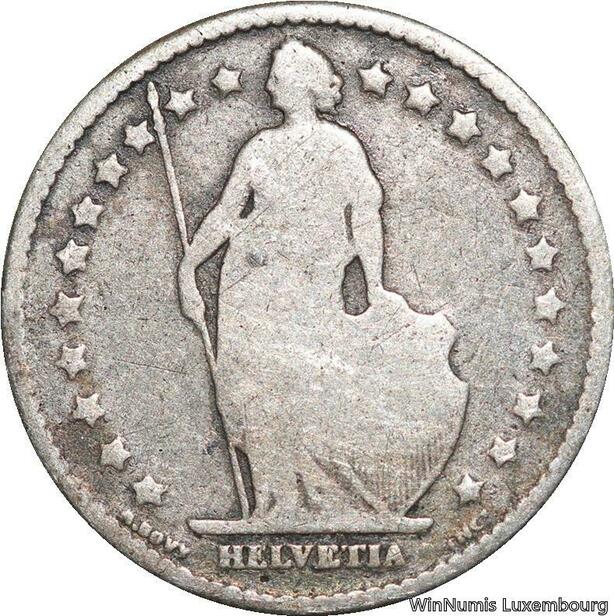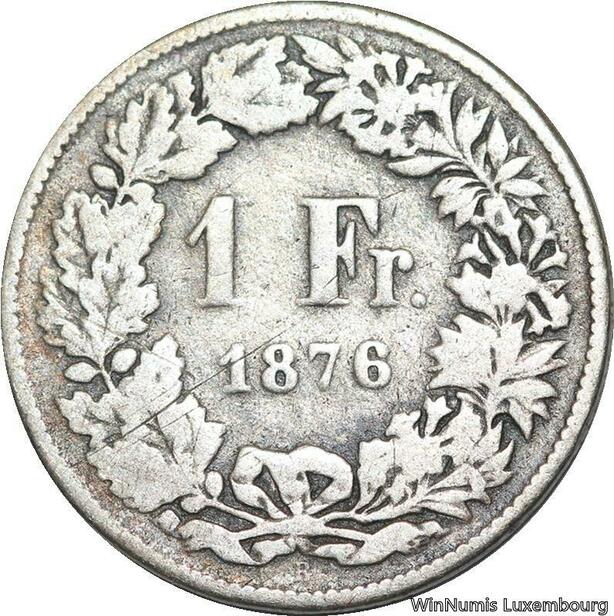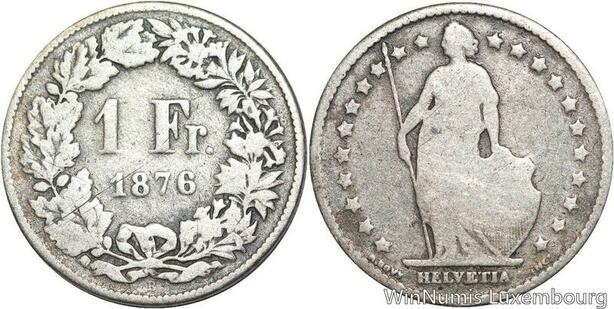 R5120 Switzerland 1 Franc Helvetia 1876 B Berne Silver -> Make offer