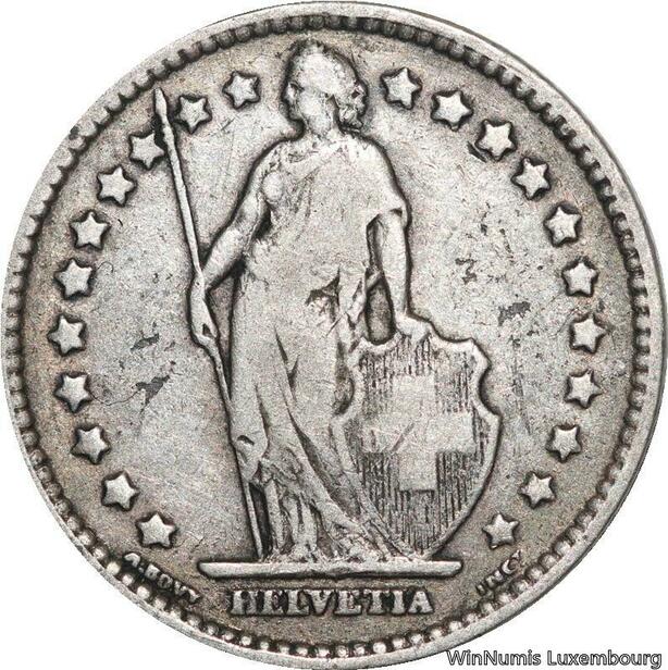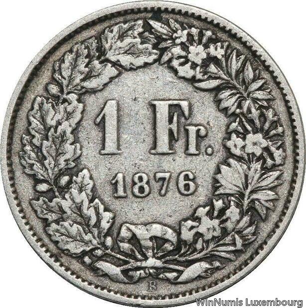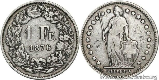 R5121 Rare Switzerland 1 Franc Helvetia 1876 B Berne Silver Quality !! ->M Offer
