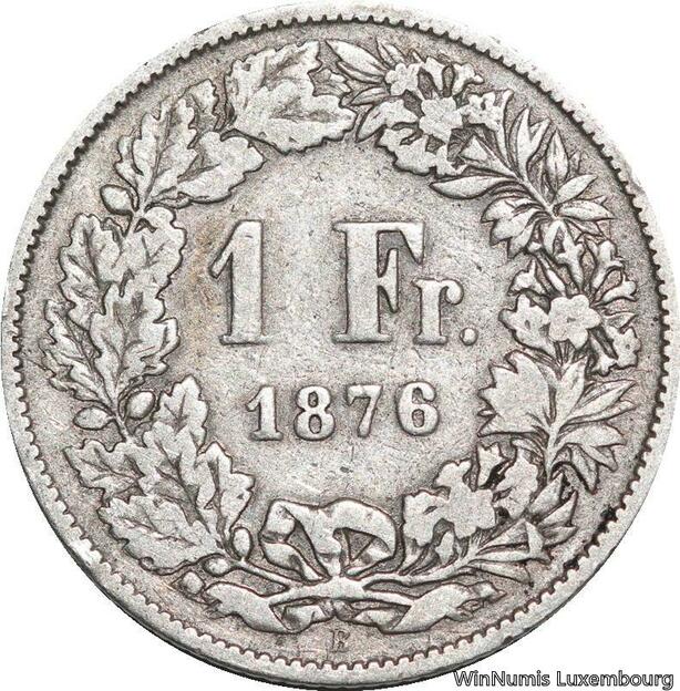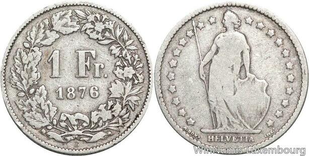 R5128 Switzerland 1 Franc Helvetia 1876 B Berne Silver -> Make offer
