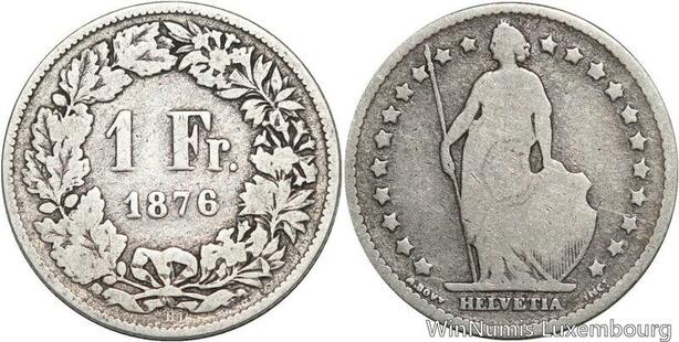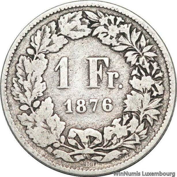 R5129 Switzerland 1 Franc Helvetia 1876 B Berne Silver -> Make offer
